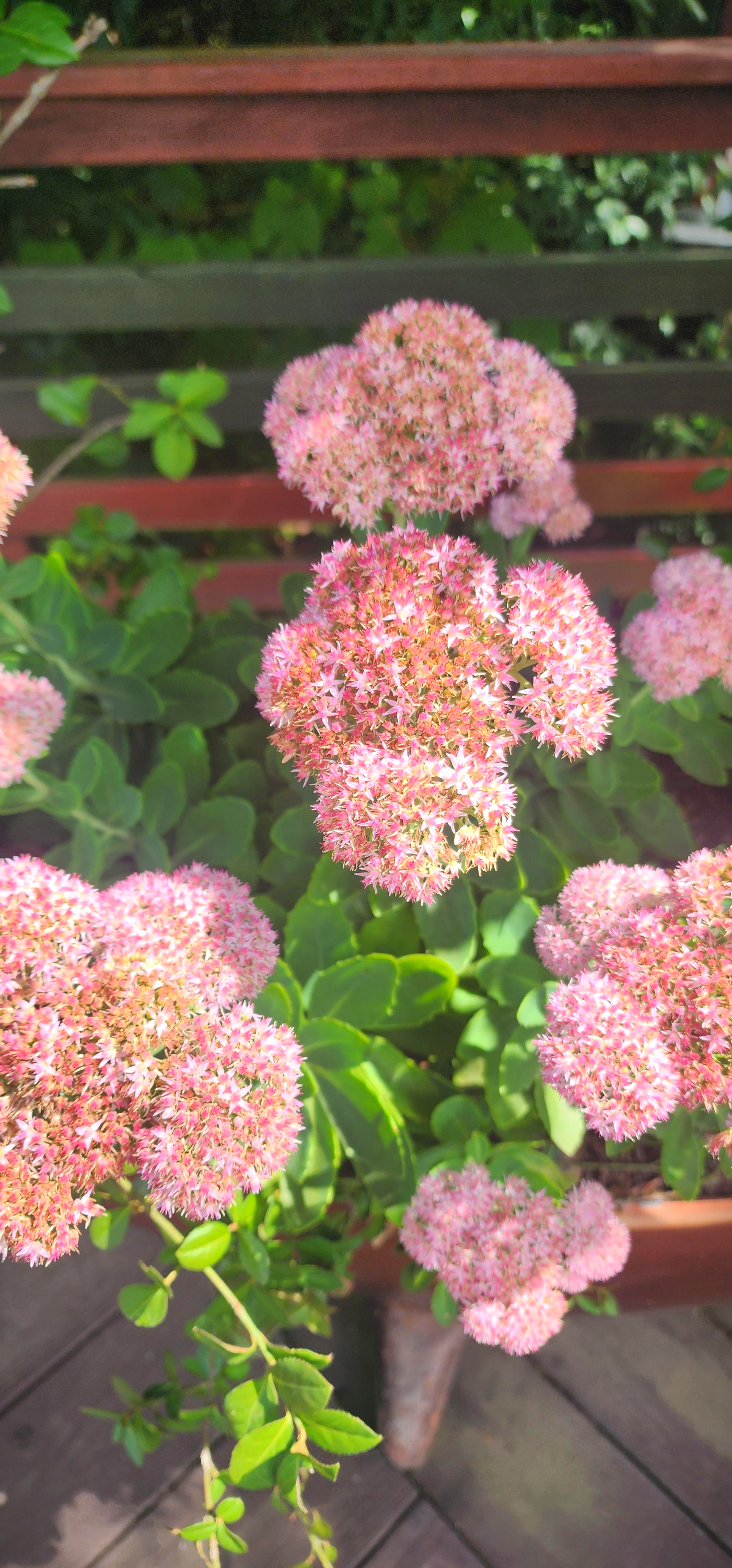 세덤 스펙터빌의 꽃은 여름 말에서 가을까지 피며, 둥글게 퍼진 우산형 꽃차례가 특징입니다. 분홍색 또는 연분홍색 꽃이 만개하면 정원 전체를 화사하게 만들며, 벌과 나비 등 곤충을 유인합니다. 꽃대 높이는 50~80cm 정도로, 다른 낮은 식물 위로 높게 올라가 시각적인 포인트가 됩니다.